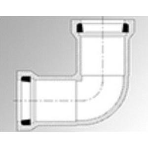 HARCO 90 deg Bend, 90 deg Bend Fitting, 8 in Connection Size 1, Connection Type 1: Gasketed, 8 in Connection Size 2, Connection Type 2: Gasketed, Gasket|Gasket Connection, PVC, Material Construction: Molded PVC, SDR 21, Pressure Class: 200 lb, 200 psi, For Use With: IPS Pressure Pipes, 14.9 in L