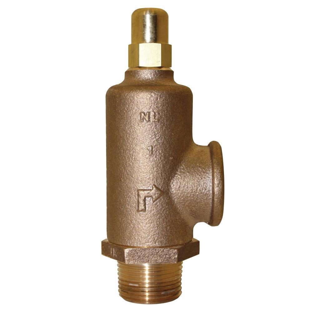 MERRILL™ Pressure Relief Valve, 1 in Nominal, NPT Connection, 75 to 150 psi Pressure, 30 to 41 gpm Flow Rate, Media: Water, Brass Body, Dimensions: 7 in L x 2-1/2 in W